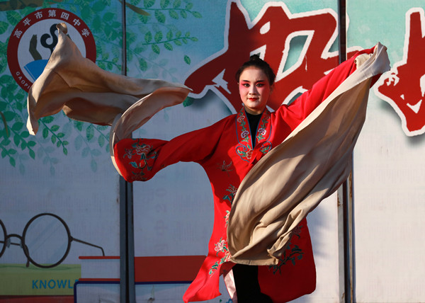 民盟365最近提款系统维护了吗_mobile.365bet.com_bt365体育投注官网委艺术团在市委副主委、艺术团团长王小桃的带领下给高平四中的师生们送去了中国优秀传统文化戏曲的相关知识和精彩纷呈的戏曲选段、表演。晋城职业技术学院的老师给四中的师生们声行并茂的讲解了中国传统文化戏剧的种类、特点以及它和人们生活息息相关的各种表现形式,戏曲选段《杀妻》和《卖水》更是获得了学生们的阵阵掌声。
