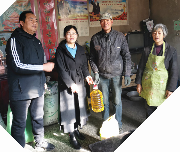 盟员们为程振田、侯海林等18户受访家庭送去大米、食用油等共计3000元的粮油物资,和他们零距离拉家常,带去民盟组织的温暖与关怀,鼓励他们振作起来,勇敢面对生活。