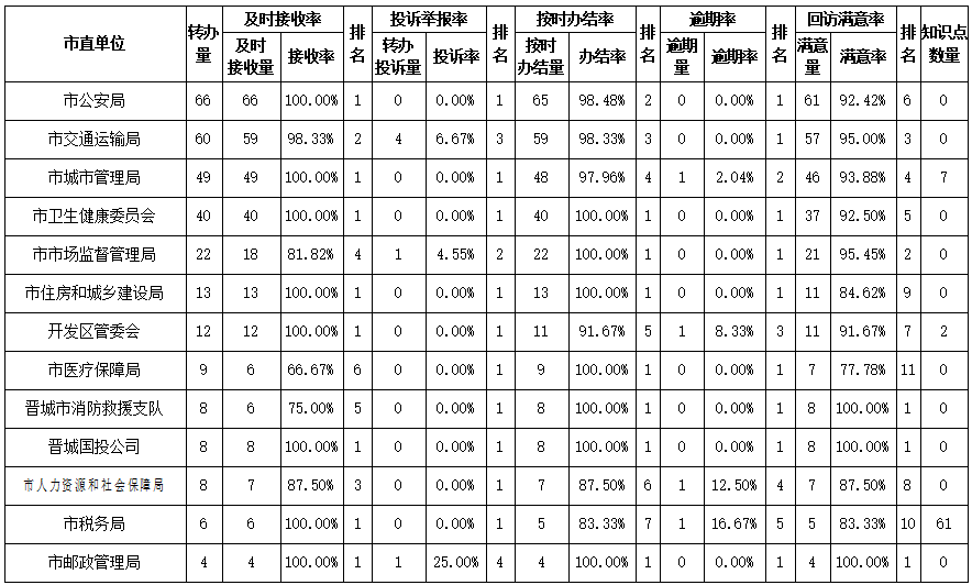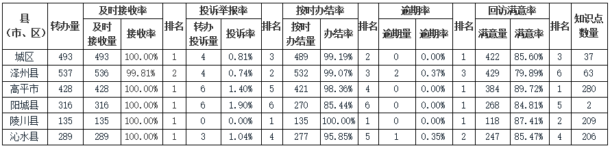 备注:及时接收率=规定时间内接收诉求件数/转办总件数