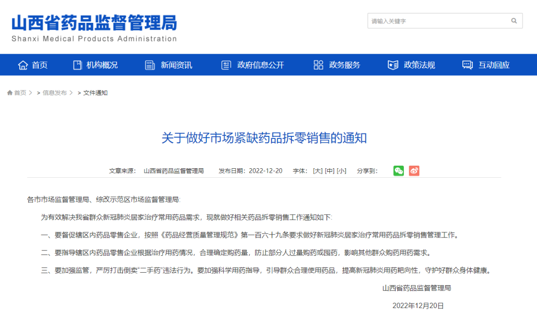 为有效解决我省群众新冠肺炎居家治疗常用药品需求,现就做好相关药品拆零销售工作通知如下: